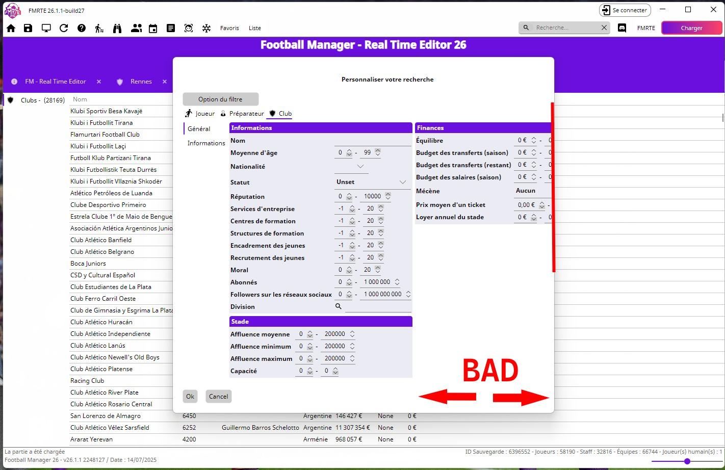 let's open search filter > club >Finances > Suggar Daddy (in French : Mécène) select anything you want (let's say "aucun" (none in English)) you'll get the alignement ecran KO.jpg