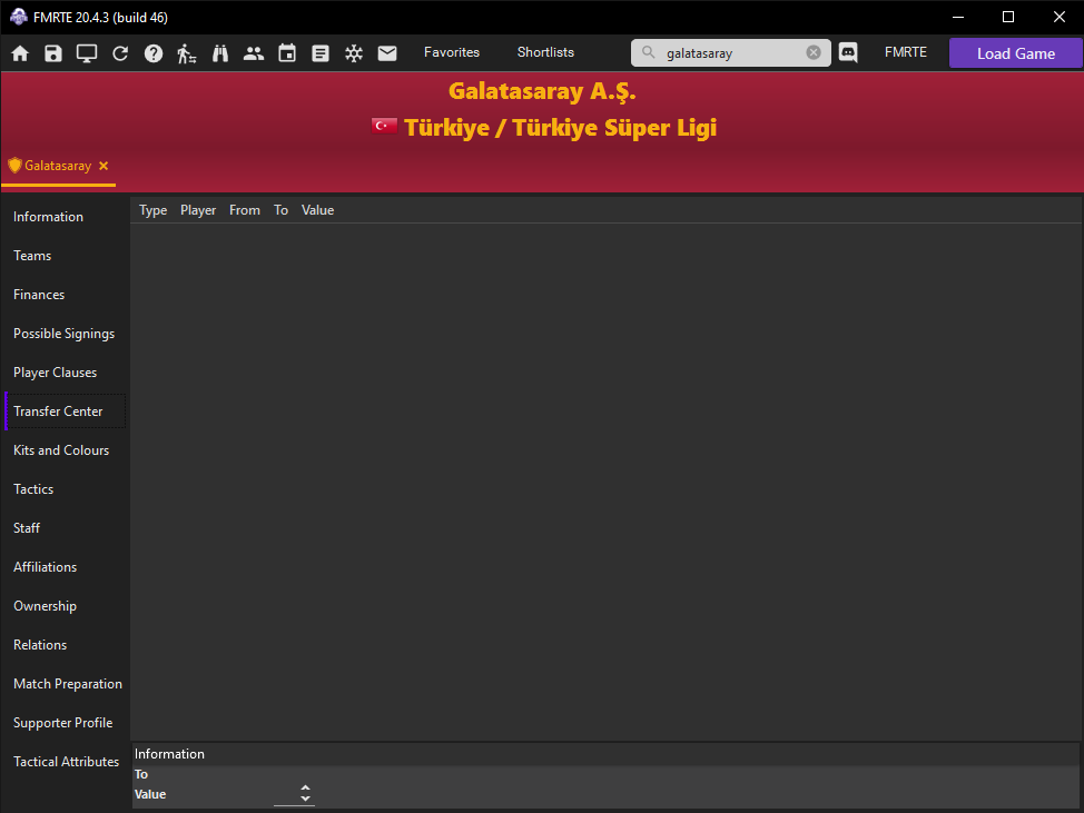When I open the transfer center, there is a blank page. The same thing does not appear when I open the other teams. I deleted and reinstalled the program but it didn't fix
