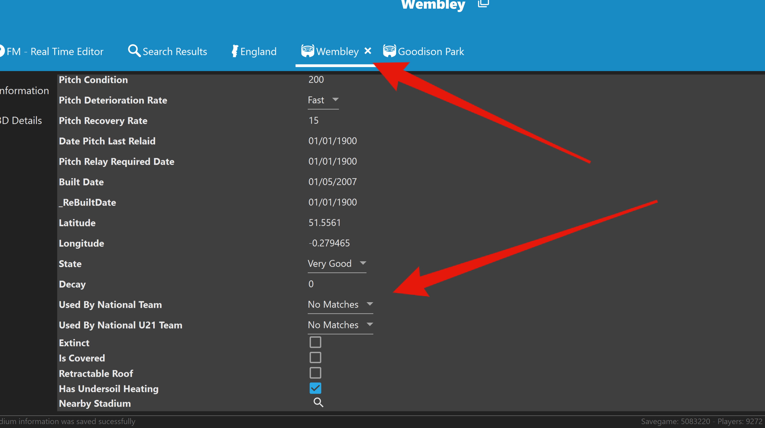 I want to use my club stadium for my national team games (I manage both teams)... I go into the stadium on FMRTE and select 'Used by National Team = All Matches", press save and click refresh. It reverts to 'Used by National Team = No Matches".