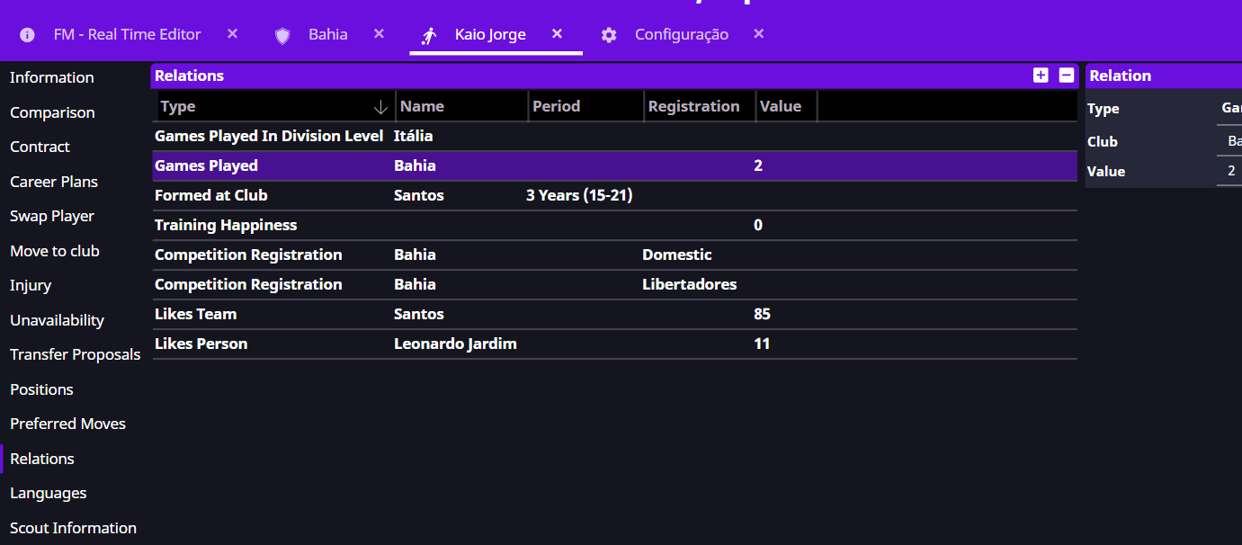I tried editing their Relations and reducing the number of matches, but every time I save and move one day forward in the game the values return to normal. How can I register them?