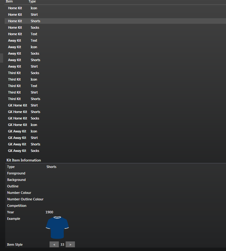 Can't edit the shorts of the home kit. There are no options to change colours and the style selector is stuck at 33 and displaying a shirt. This is in Create-A-Club mode, it does work in the normal career mode.
