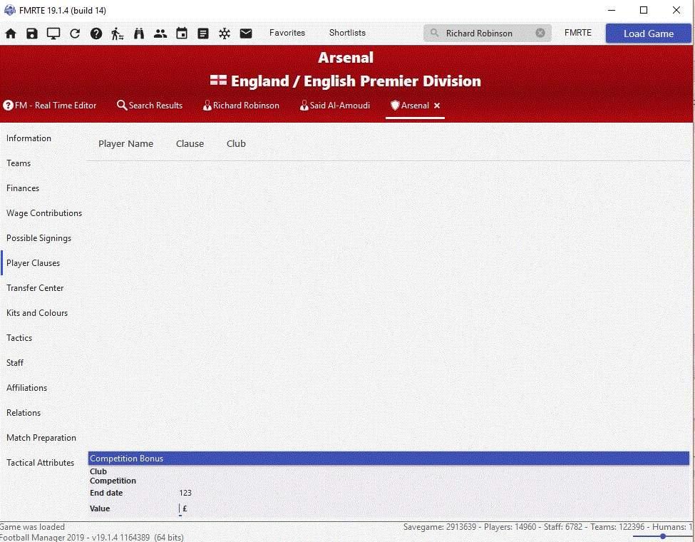 What bugs/issues did you encounter: What is your FM version: 19 What is your FMRTE version: 19 Which operating system are you using: Windows Player Clauses Tab in club page is bugged. Please see attached. Attachments: