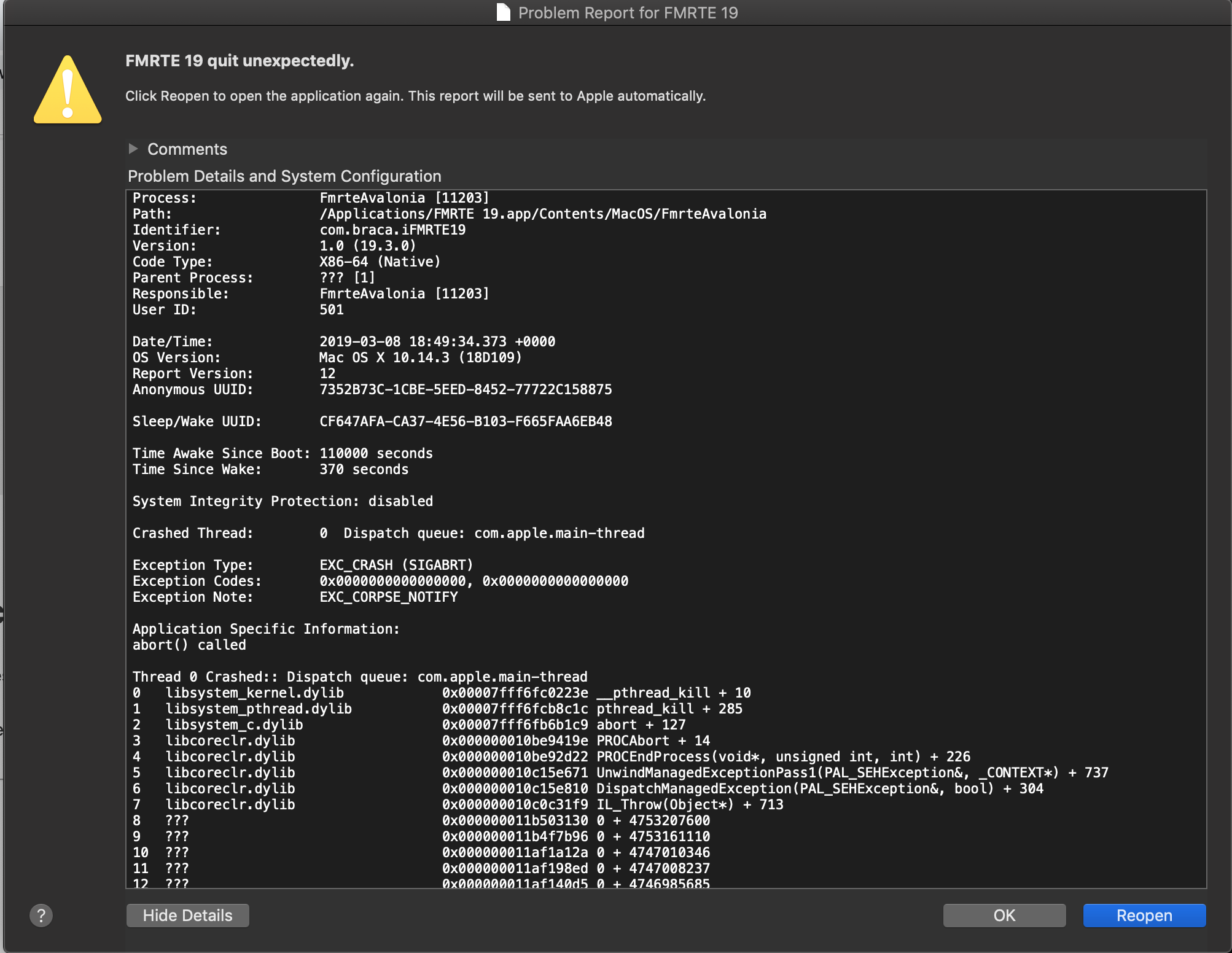 Every time I try to open FMRTE I just get this message, it's been downloaded and moved into my Applications folder. Any ideas?
