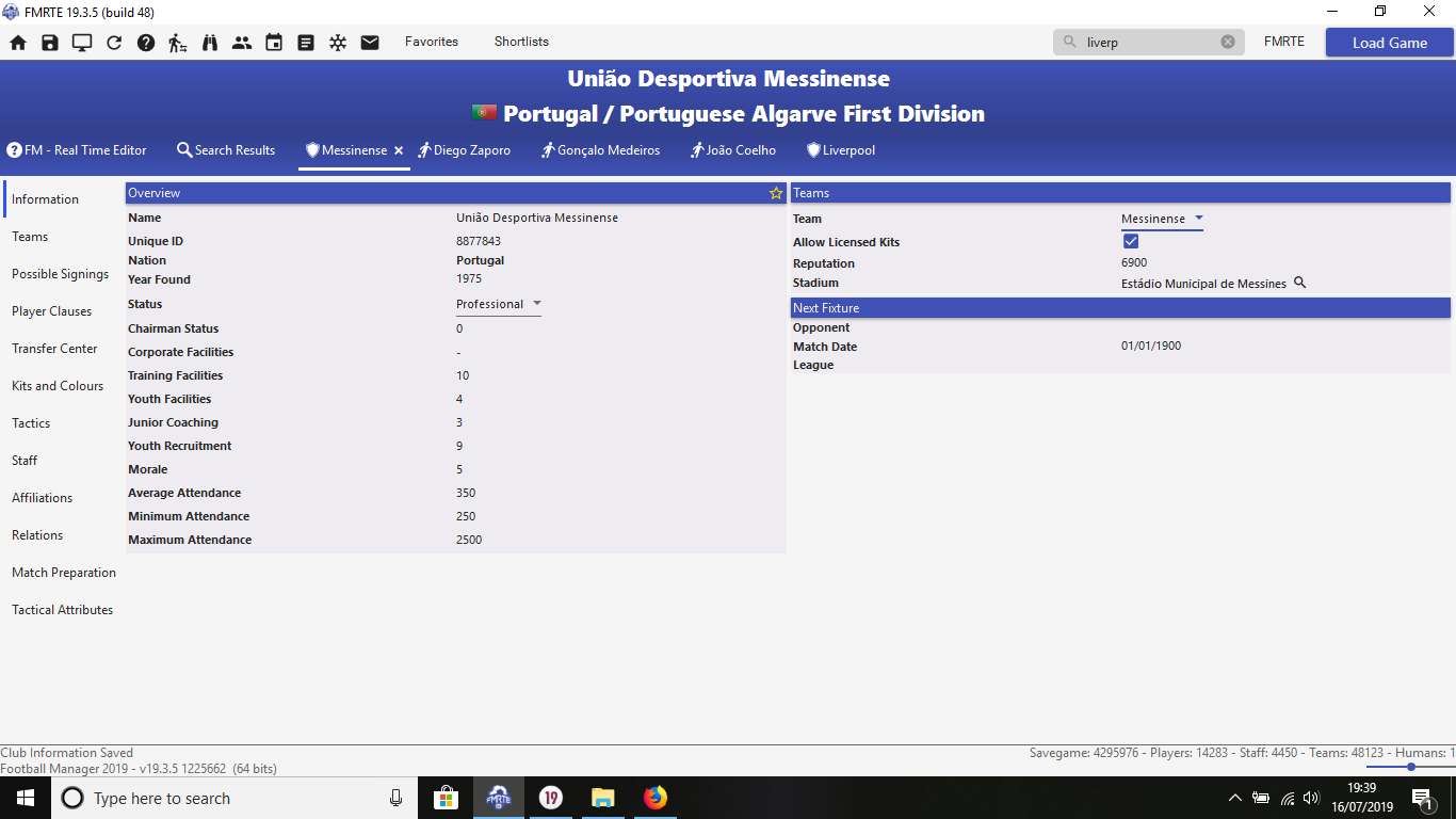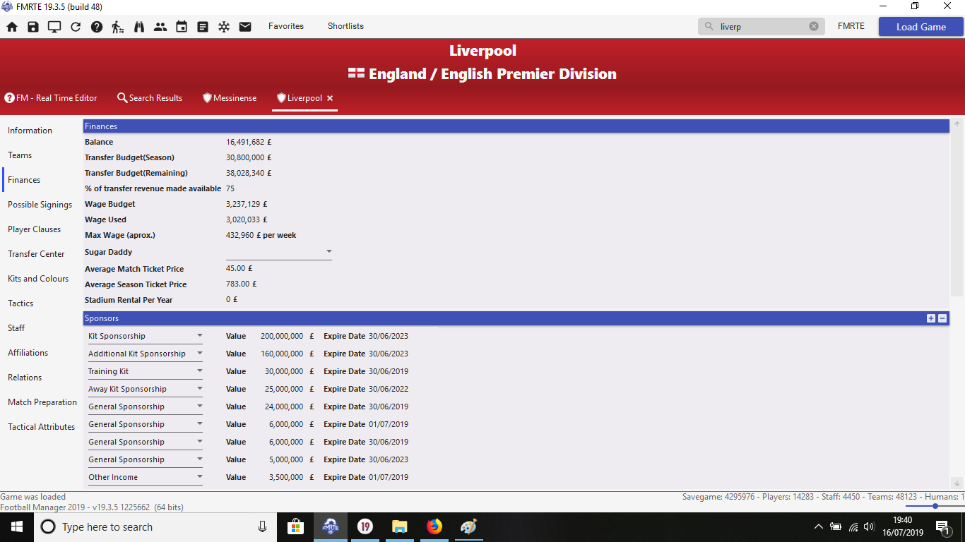 First Screen is of the team I am trying to edit finance for Messinense (portuguese team), Second is of Liverpool.