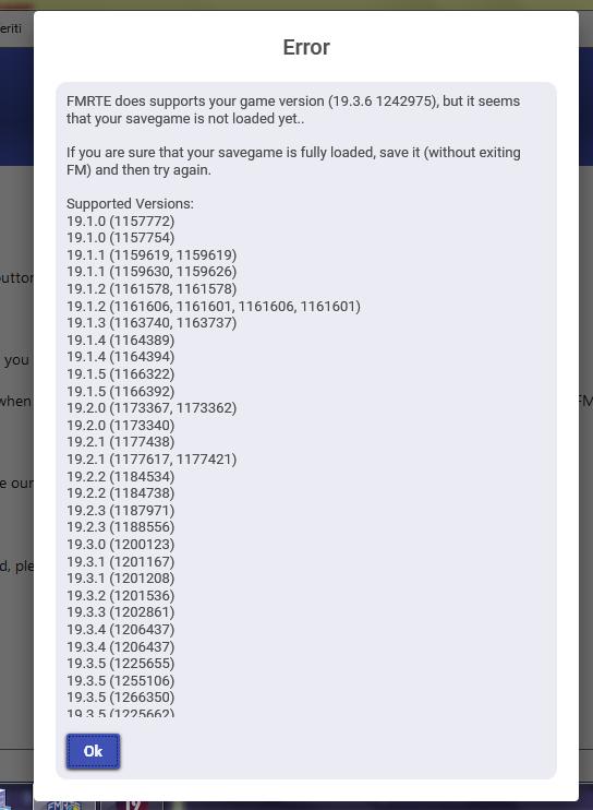 All users who participate in the SI beta testing option after the full game release will not be able to use FMRTE on their saves as the public/Dev team here do not have access to these builds.  This option is used to test fixes for SI for future releases and may never be released to the public. Support is not given for these builds.