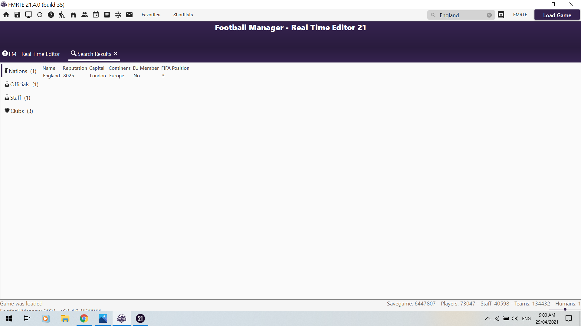The screenshot in my last post shows what I get if I search for England- the left pane only shows :Nations, Officer, Staff and Clubs
