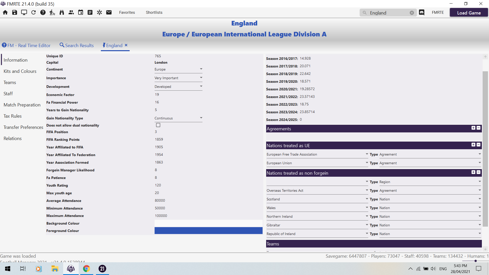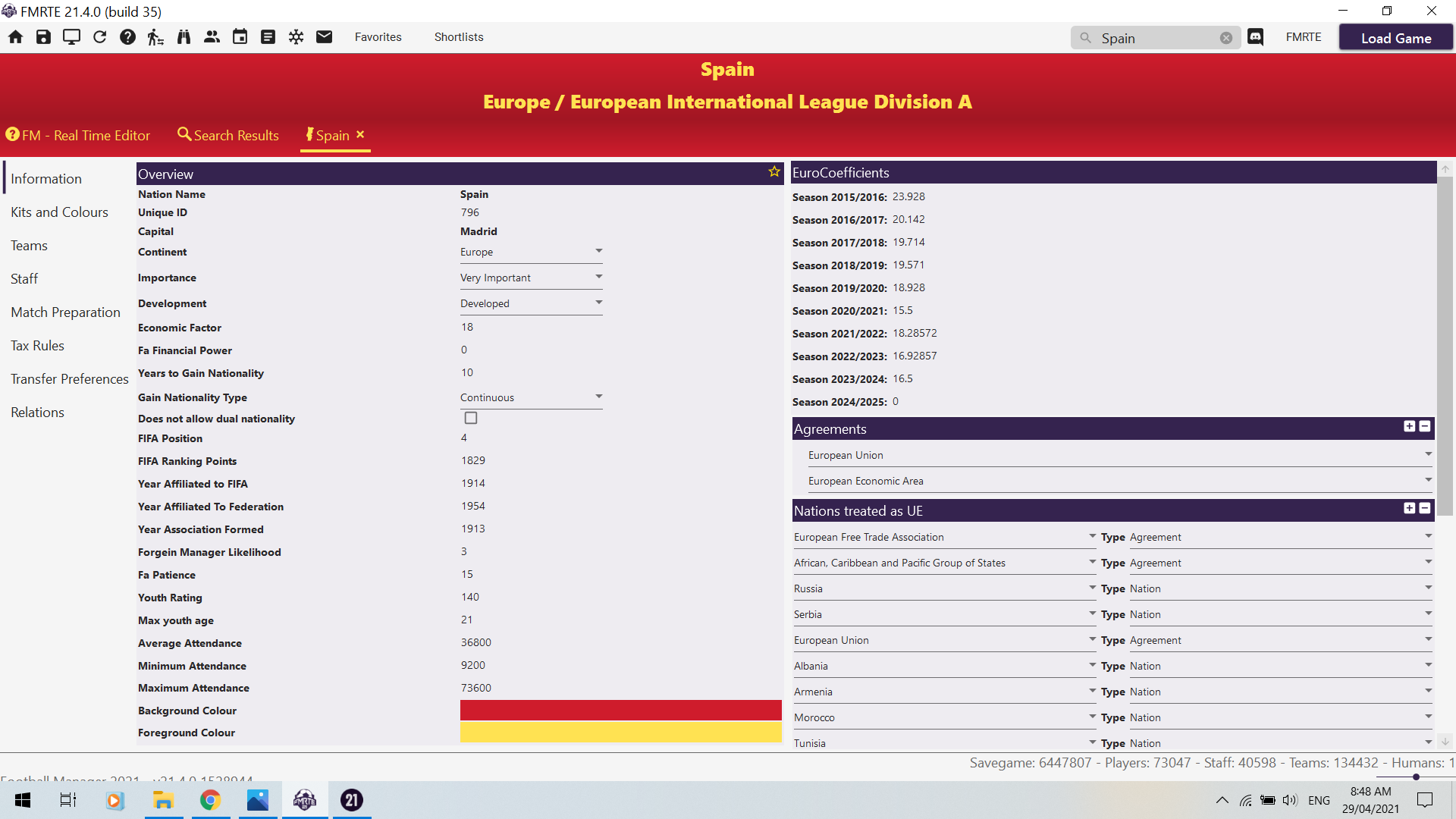 post a screenshot of nation you are wanting to edit and also post England and Spain to see what options you have
