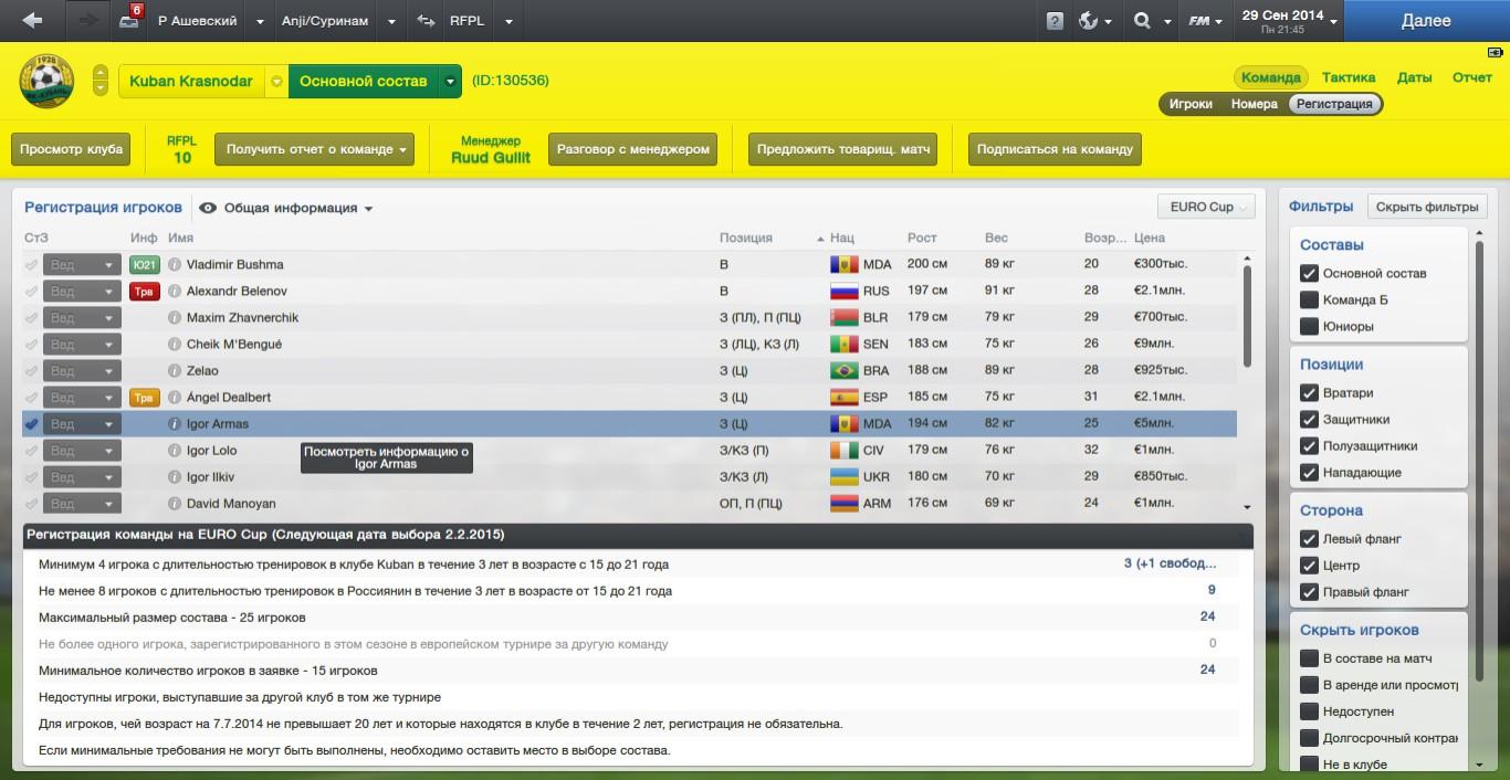• Ruslan changed the title to Player unavailable even after UEFA registration, FM 13.