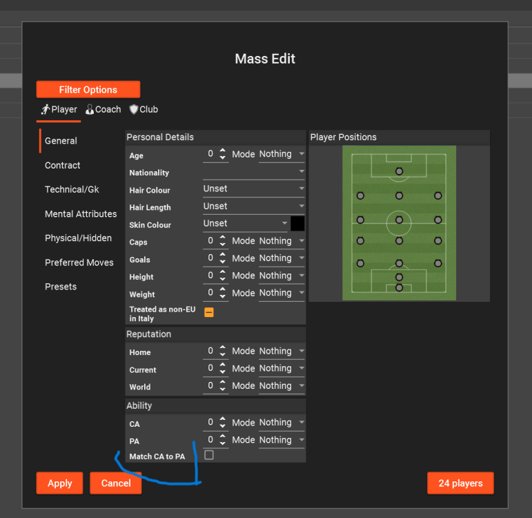 8. @Tarik Kaya By the way, can you do this by using the mass editor. There is an option that says match CA to PA. Click that and you can set your team or all the team to mach their PA's